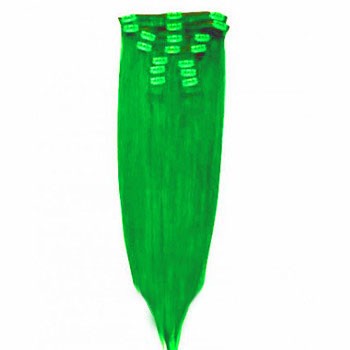 24" Green 9PCS Straight Clip In Brazilian Remy Hair Extensions